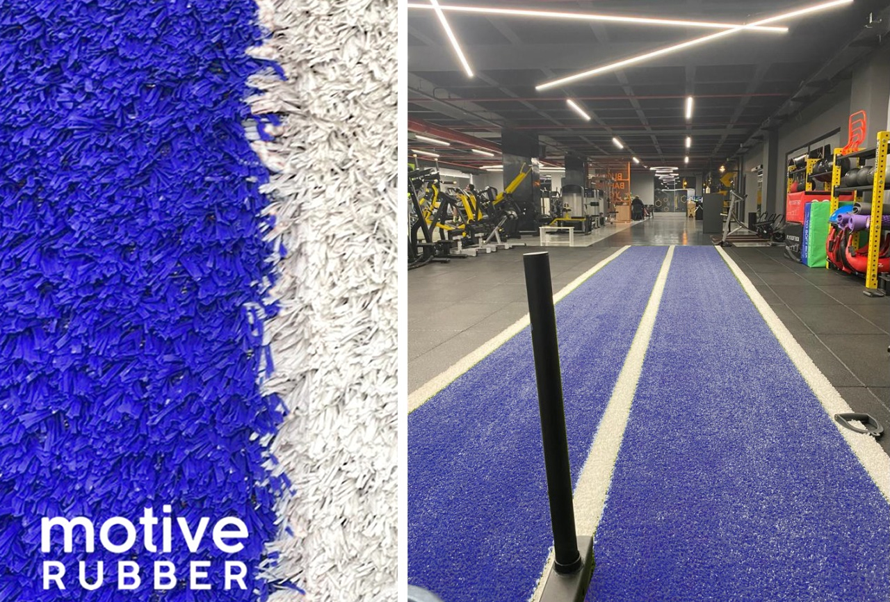 Motive Astroturf fitness antreman kızak halımız, baskı gördükçe sıklaşan özel yapısıyla. Profesyonel fitness antremanlarınızda, kızak ittirme, güçlendirme, hızlandırma ve halat çalışmalarınız için uygun bir istasyondur.